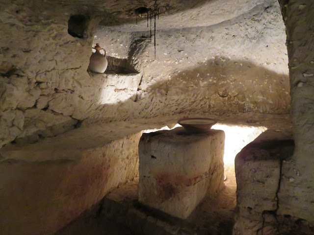 L’hipogeu fou excavat a una profunditat de 7 o 8 metres des del nivell el carrer. Sota terra es creava una temperatura constant molt adient per fer l’oli i per conservar-lo. I a més a més...amb tant d’atac dels turcs, l’hipogeu era un bon refugi.